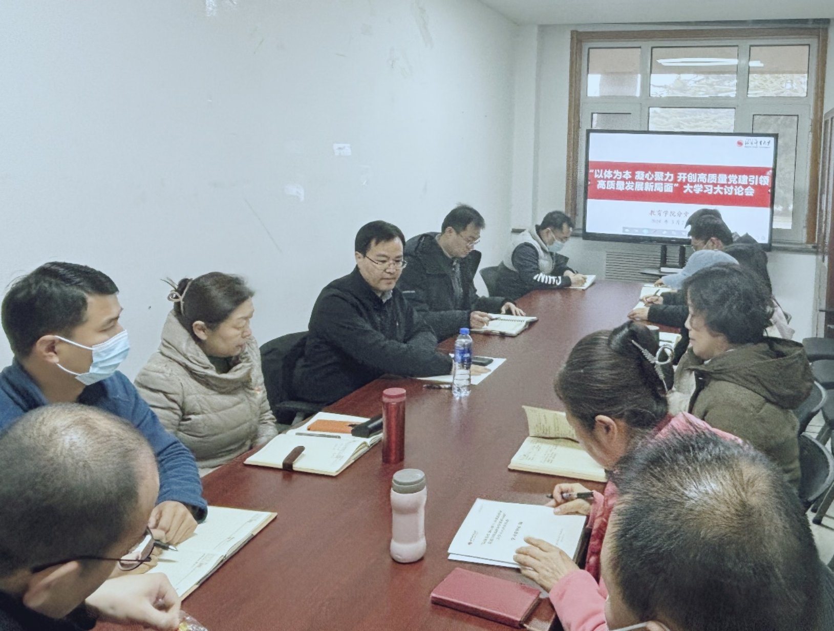 为统一思想、凝聚共识,按照学校党委相关要求,2024年3月27日学院分党委在学院104会议室召开“以体为本 凝心聚力 开创高质量党建引领高质量发展新局面”大学习大讨论,学校党委副书记、副校长周启迪参会。学院党政领导、分党委委员,教师党支部书记,院办全体人员参加会议。