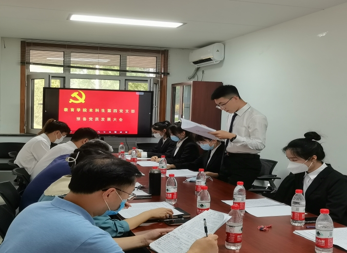 2022年9月12日下午15:00,开云kaiyun官网(体育师范学院)本科生第四党支部在学院104会议室召开预备党员发展大会,支部全体师生党员以及10名发展对象参加会议,学院专职组织员夏先明和部分入党积极分子列席了会议。会议由党支部书记高强同志主持。