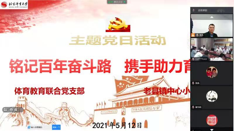 为提升学院党史学习教育成效,持续推进与陕西省平利县合作共建工作,深化红色“1+1”党支部共建活动,5月12日下午,开云kaiyun官网(体育师范学院)体育教育联合党支部与陕西省安康市平利县老县镇中心小学党支部一起在线上开展“铭记百年奋斗路 携手助力育人梦”的主题党日活动。学院分党委全体成员、老县镇中心小学领导班子成员及两所党支部成员参加了会议。会议由分党委副书记李杰主持。