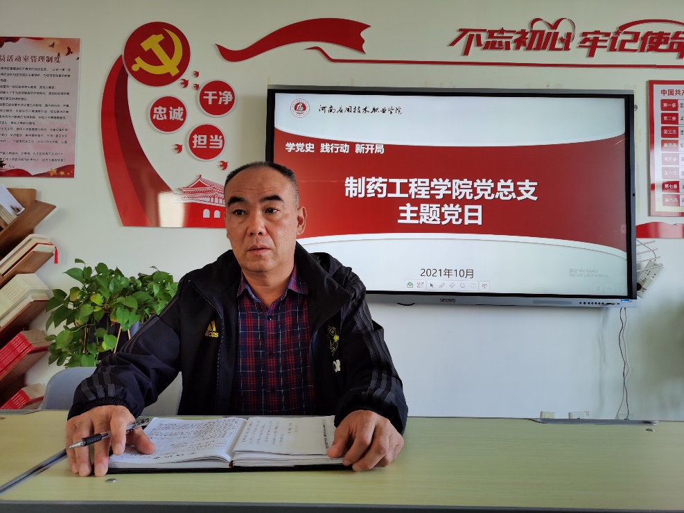 本周二10月19日下午,制药工程学院组织全体党员与教职工在办公楼501室,开展学习贯彻习近平总书记在陕西榆林考察时的讲话精神、在河北承德考察时的讲话精神和9月7日省委工作会议精神。会议由学院党总支书记窦传斌主持。