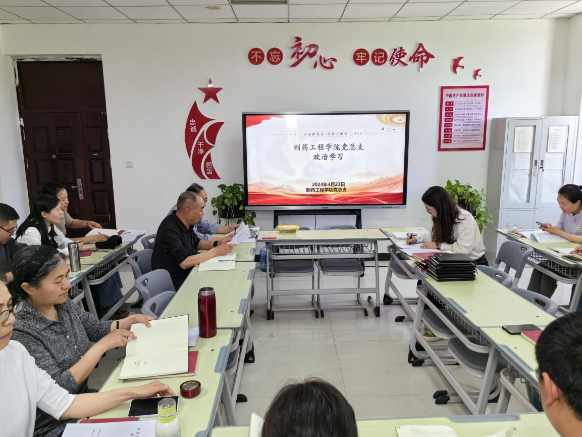 根据学校党委宣传(统战)部安排,制药工程学院党总支于2024年4月23日下午在301党员活动室开展政治理论学习专题会,会议由学院党总支书记窦传斌主持,全体教职工参加学习。