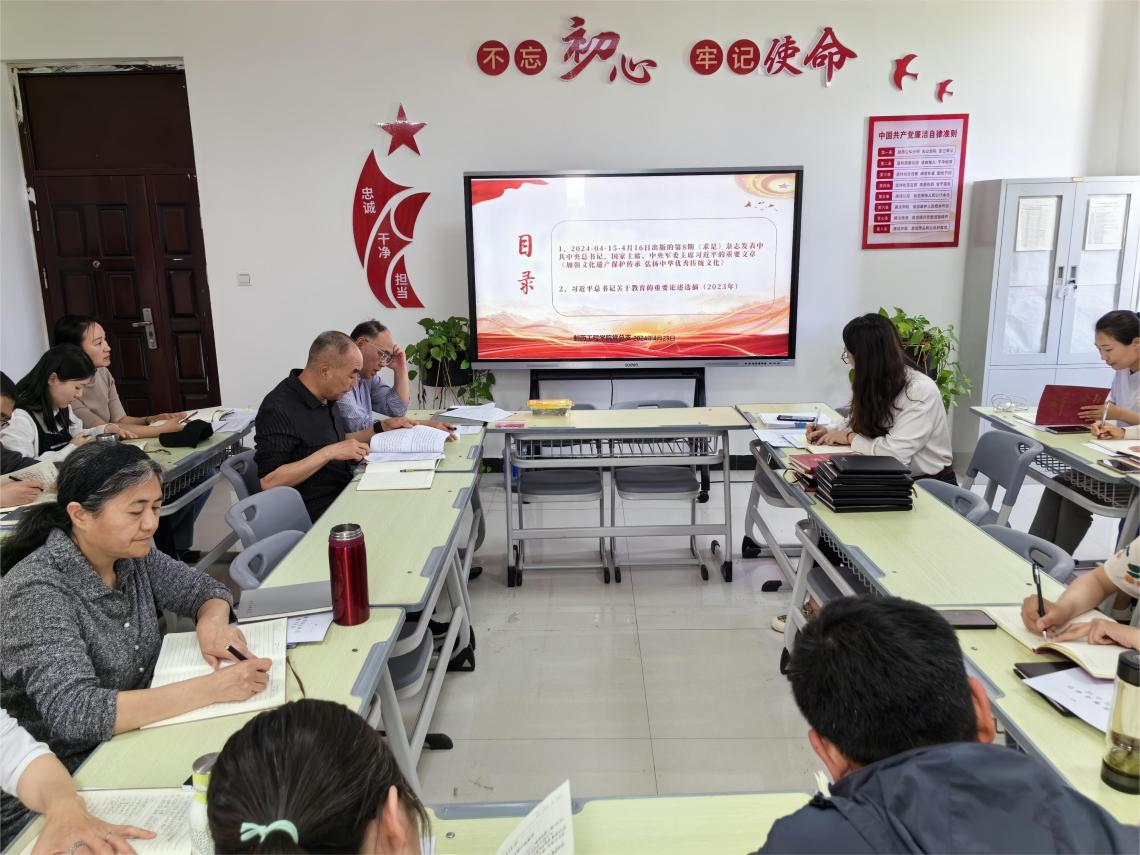 首先,窦传斌带领大家学习第8期《求是》杂志发表中共中央总书记、国家主席、中央军委主席习近平的重要文章《加强文化遗产保护传承弘扬中华优秀传统文化》。窦传斌指出,要深刻把握习近平文化思想的精髓要义,并把这一重要思想贯彻落实到教育教学全过程各方面,积极引导学生弘扬中国传统文化。同时,要坚定文化自信自强,要勇担新的文化使命,推动习近平文化思想走深走实。