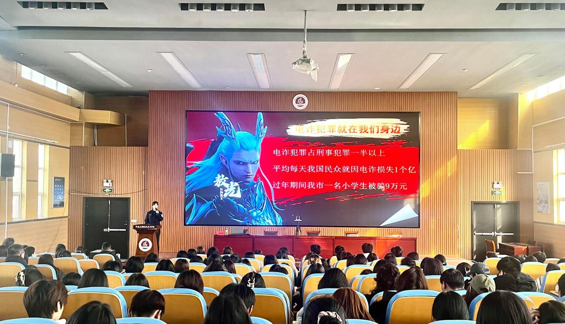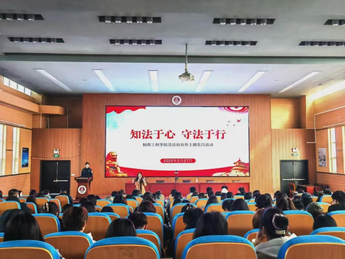为认真贯彻党的二十大和二十届三中全会精神,深入学习宣传习近平法治思想,进一步加强法治宣传教育,增强师生法律意识,提高师生对诈骗的辨识能力。2025年2月27日,制药工程学院党总支在开封校区南院报告厅开展“知法于心,守法于行”反诈法治宣传教育主题党日活动。本次活动以讲座形式开展,特邀开封市示范区刑事侦察大队任勤勤警官进行反诈普法宣讲,学院党总支副书记白小茗主持,全体党员教师、专兼职辅导员和各班入党积极分子代表参加。
