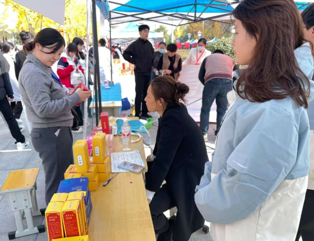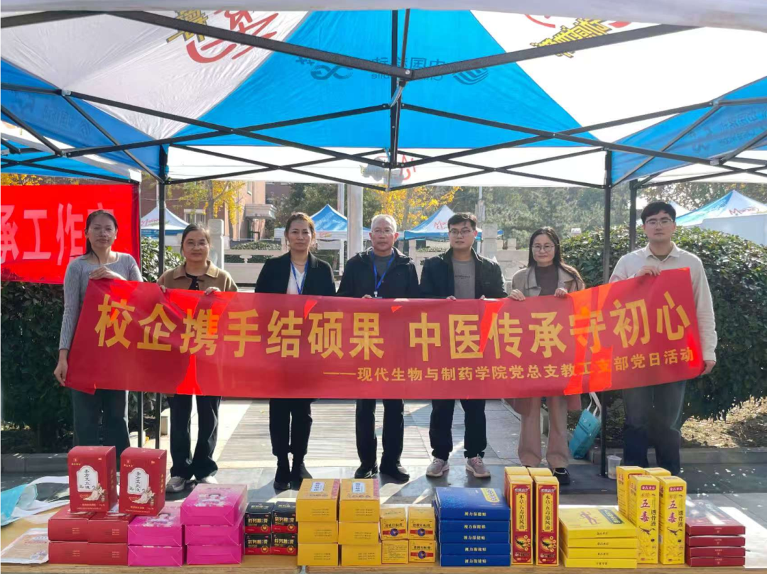 11月5日下午,beat365中文官方网站党总支教工党支部以“校企携手结硕果,中医传承守初心”为主题,联合河南金古圣方生物科技开发有限公司,在河南省中医药市集开展党日实践活动,教工党支部全体党员与学生志愿者共同参与。