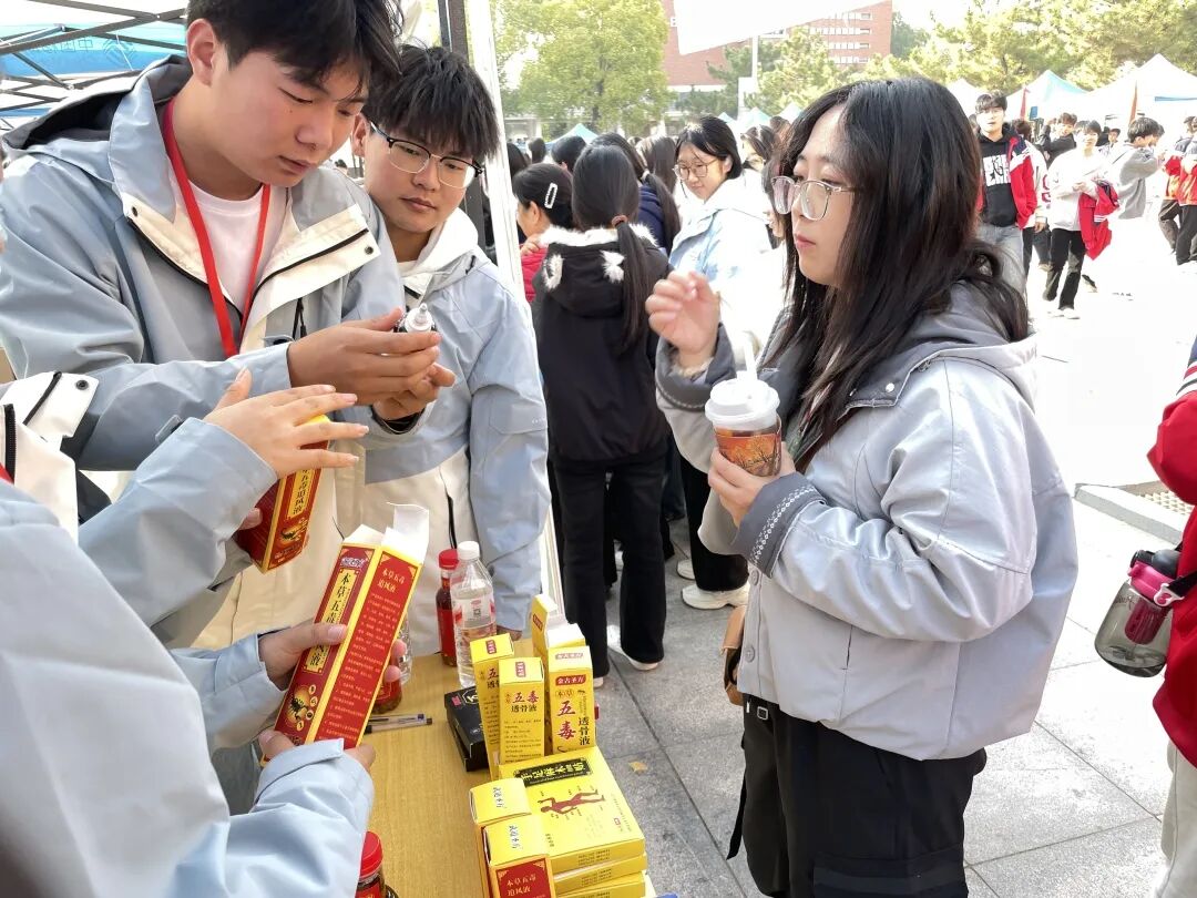活动现场,党员分组为群众讲解产品研发理念、功效与技术优势,同步与企业研讨中医药研发与职业教育融合路径;同时,学生志愿者承担人流疏导、资料发放、反馈收集工作,在实践中锤炼了能力。