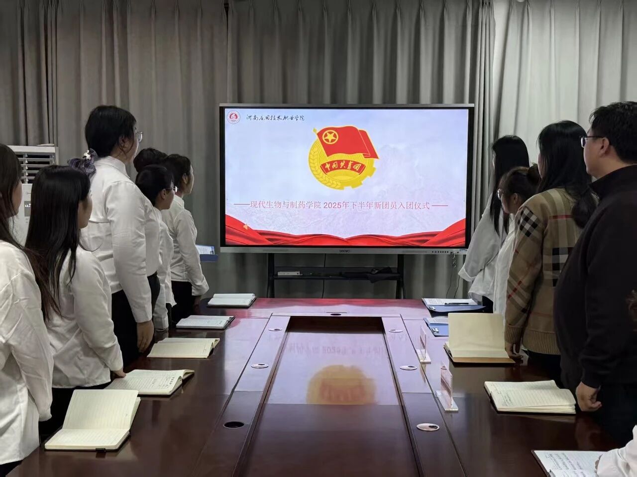 岁聿云暮,薪火绵延。为夯实党团一体化培养根基,凝聚青年奋进力量,12月4日,2025年下半年beat365中文官方网站新发展团员入团仪式于行政楼301会议室隆重举行。学院党总支副书记王俊永、团总支书记曹璐出席仪式,优秀团员代表与全体新团员共同参加,仪式由化制2401班任政泽主持。