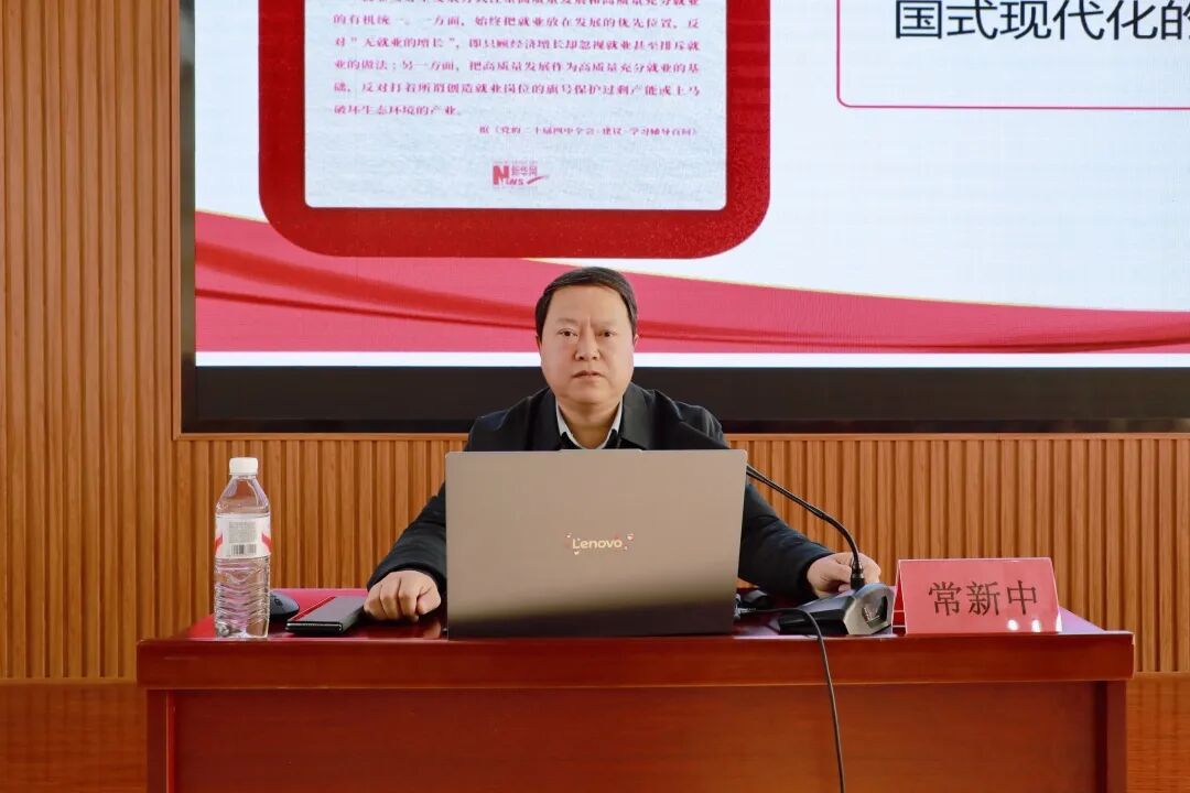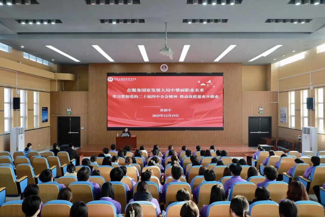 12月19日,学校副校长、开封校区管委会副主任常新中以“在服务国家发展大局中擘画职业未来——学习贯彻党的二十届四中全会精神,推动高质量充分就业”为主题,为beat365中文官方网站师生代表讲授了一堂生动的专题思政课。