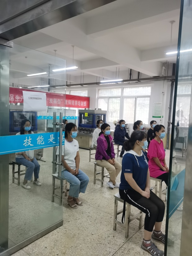 演练开始由方案总指挥制药工程学院院长韩恩远提出相关要求,每位参演同志按照角色进入演练,从场所消毒,体温测量到学生进入实训室等每个步骤都进行了严格要求,以防疫实战状态进行。