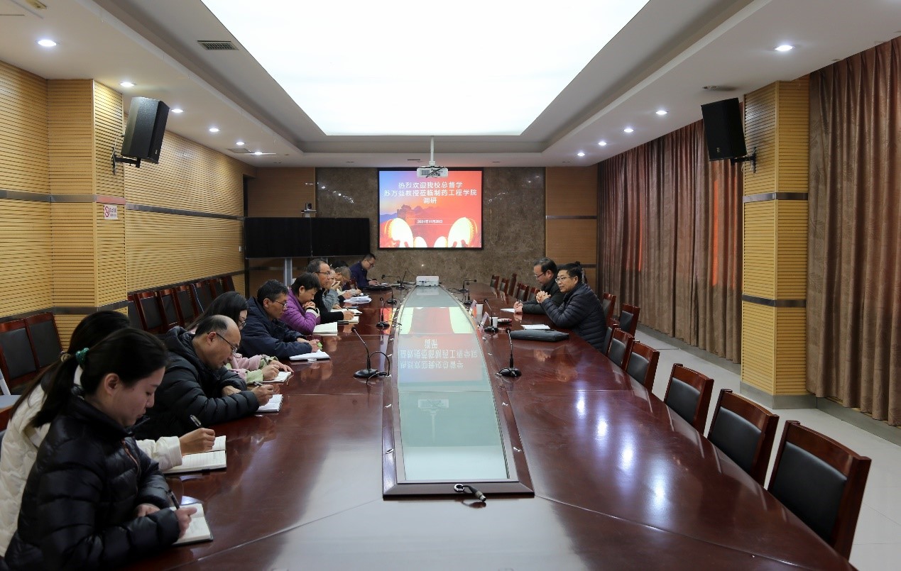 2021年11月26日上午,beat365中文官方网站总督学苏万益、质量发展处副处长李杰莅临制药工程学院开展调研,并与学院领导及部分教师代表座谈。