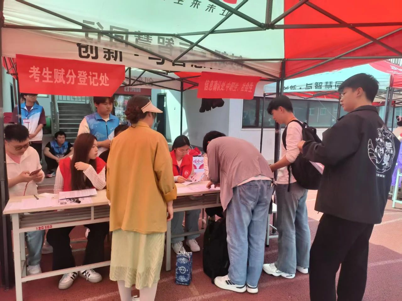 制药工程学院志愿服务队的志愿者们分工明确、各司其职,全方位助力考试顺利进行。引导同学们到学院服务点进行报到和信息确认;在信息核对时,志愿者们认真核对考生信息表,逐一核对考生证件。针对外地考生对校区环境不熟悉的情况,制作了 “考前路线图”;他们身着统一的志愿服装,脸上洋溢着青春的朝气与担当的坚定,用实际行动诠释着志愿服务精神,为单招考试增添了一抹温暖而亮丽的色彩。