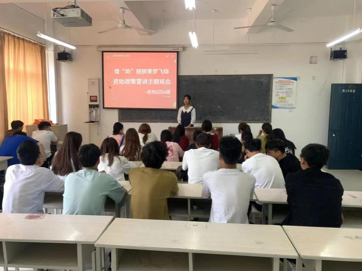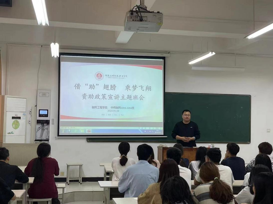 为使同学们更好的了解学校资助政策,推进我院资助工作平稳有序进行,根据学校整体工作安排,2023年5月9日-10日,制药工程学院21级、22级各班开展以“借“助”翅膀,乘梦飞翔”为主题的资助政策宣讲。