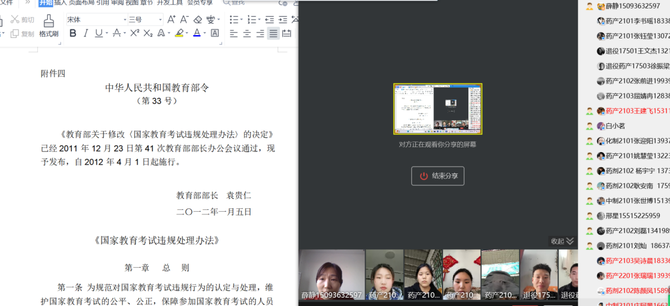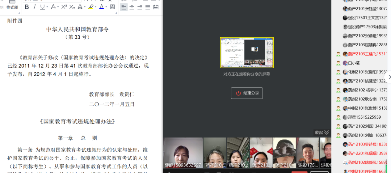 2024年专升本考试临近,为做好专升本考生考前相关工作,进一步端正考风、严肃考纪,引导考生树立诚信考试的正确价值观,制药工程学院2024年3月12-3月16日之间召开线上专升本考试诚信教育主题班会,会议由制药工程学院专升本负责人薛静主持,各班专升本考生积极参会。