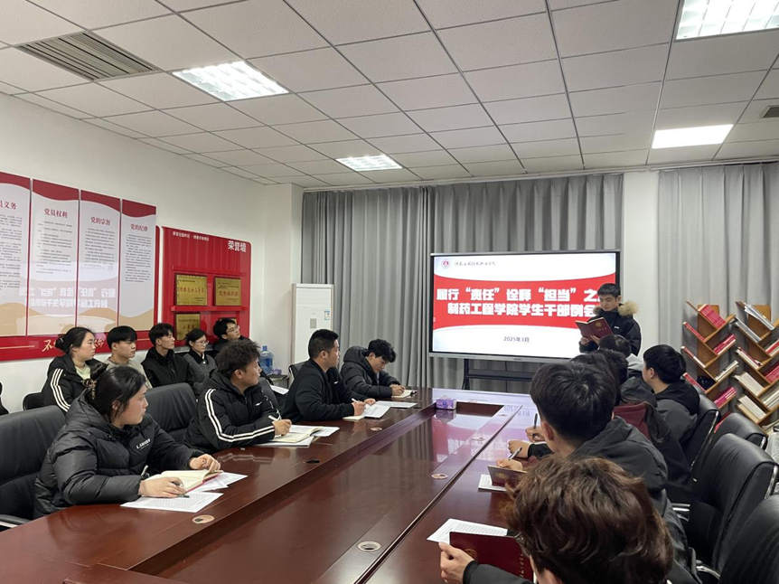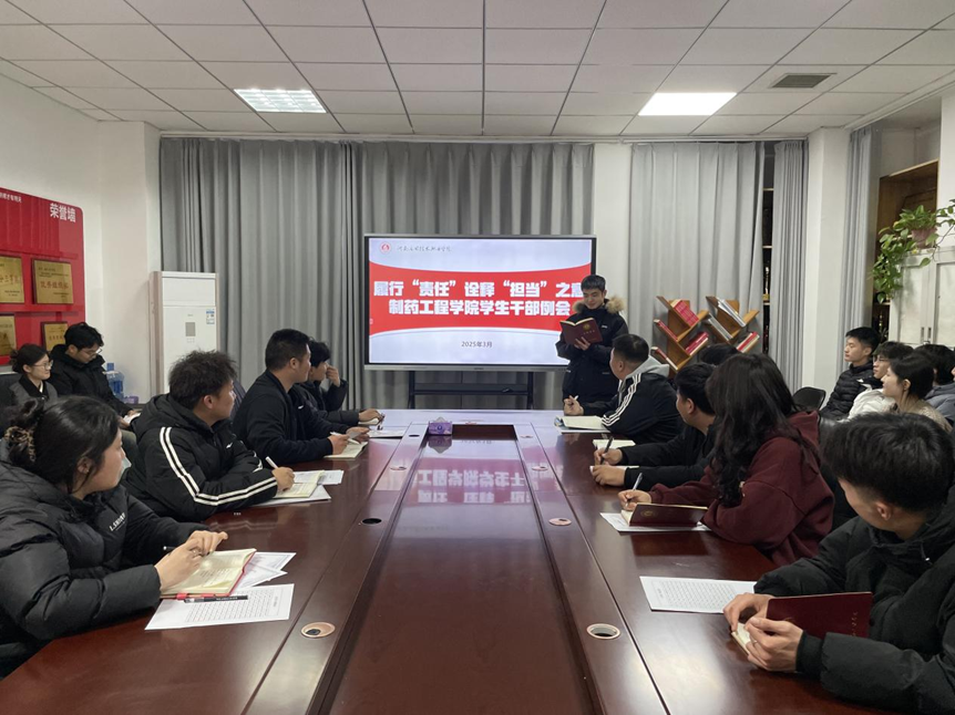 为进一步增强学生干部的自我管理和自我服务意识,提高干部们的能力水平,制药工程学院于2025年3月10日下午17:40在办公楼301召开学生干部例会。制药工程学院学生会主席团及各部部长、副部长参加会议,会议由主席团祝海辰主持。