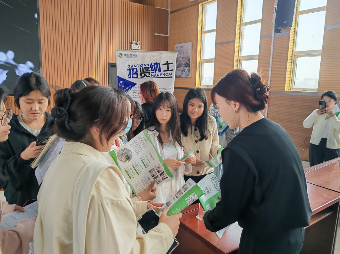 宣讲会上,江苏盛世康禾生物技术有限公司的代表率先登台。通过播放精心制作的企业宣传片,代表向在场学生全面展示了公司的发展历程、主营业务、企业文化以及人才战略。随后,就招聘岗位的具体要求、薪资待遇、职业发展路径等学生关注的重点内容,进行了细致解读,极大地激发了学生们的兴趣。