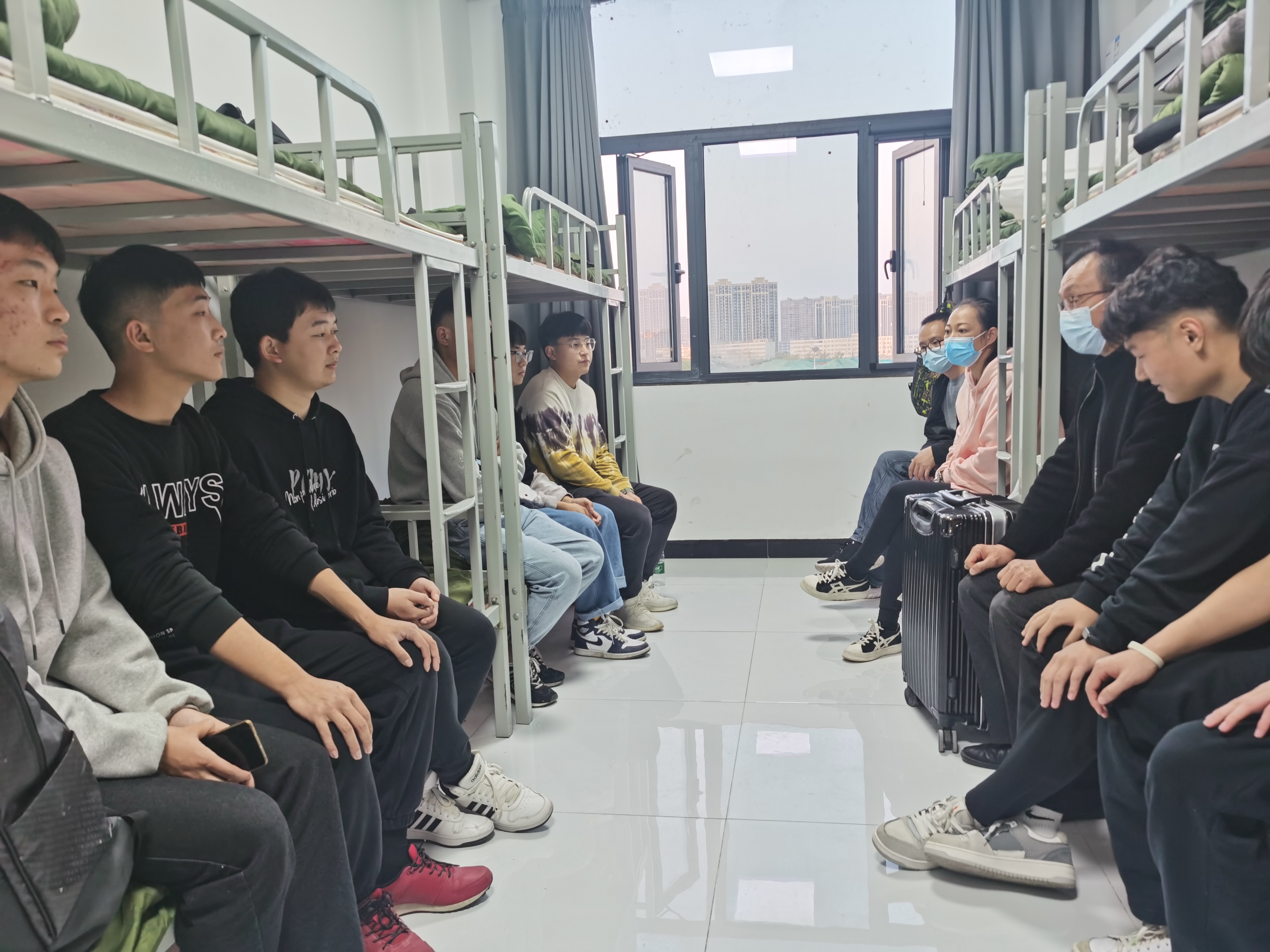2021年10月30日,制药工程学院顶岗实习学生技能提升培训顺利开班,制药工程学院院长韩恩远、副院长高莉丽与辅导员教师一行人,到达河南长庚职业技能培训学校实训基地探望参与培训的学生,并与学生开展交流,关心学生疫情防控及食宿情况,呼吁学生在技能培训期间掌握一技之长,更好的服务于药品生产行业。