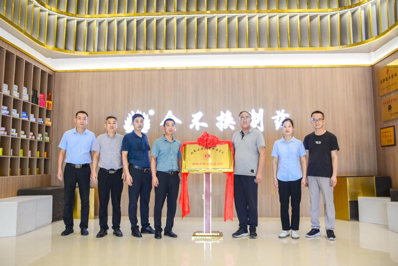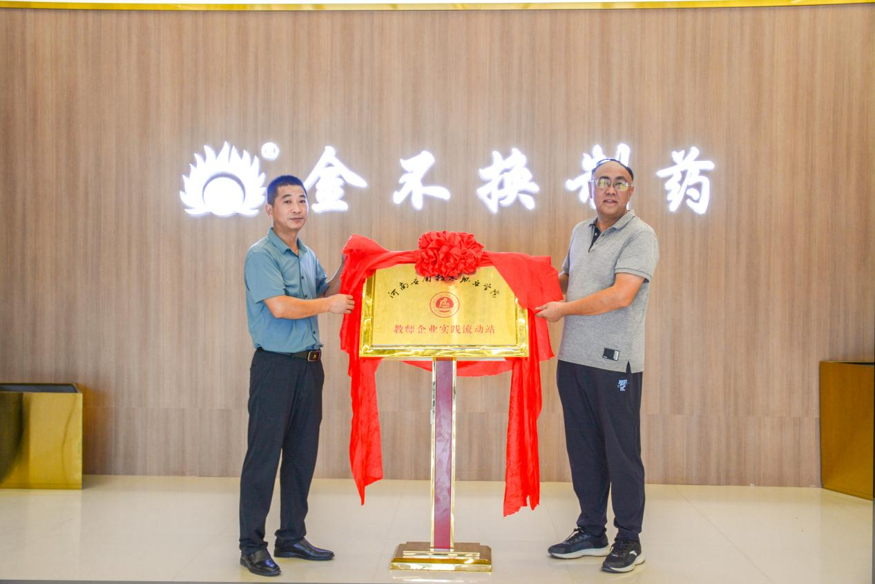 2023年8月11日,制药工程学院产教融合实训基地和教师企业实践流动站签约揭牌仪,在上海金不换兰考制药有限公司顺利举行。制药工程学院院长吕玮与金不换药业公司董事长丁龙,共同为产教融合实训基地和教师企业实践流动站揭牌。校企合作与就业处副处长梁艳以及金不换制药部分领导参加了揭牌仪式。