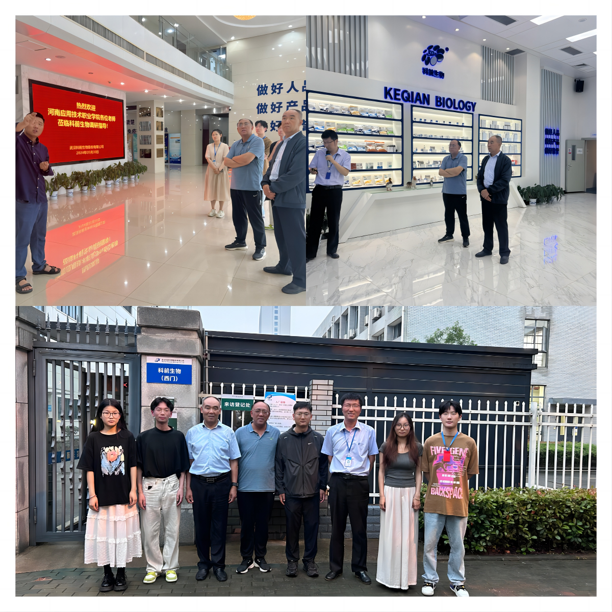在武汉科前生物股份有限公司,吕玮从学校的基本情况以及制药工程学院的专业设置、人才培养等方面向企业与会领导作了详细介绍。武汉科前生物股份有限公司董事长助理刘继东从“公司简介”“理念与使命”“创新团队与平台”“科技成果”等方面展开详细介绍。随后,双方就未来进一步合作的相关问题展开了深入交流。
