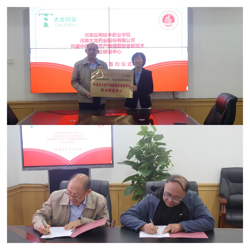 此次研发中心签约及挂牌仪式不仅为制药工程学院和河南太龙药业股份有限公司提供了一个良好的交流与合作平台,也为推动教育和经济共同发展搭建了良好的桥梁,为双方未来的进一步合作奠定了坚实的基础。