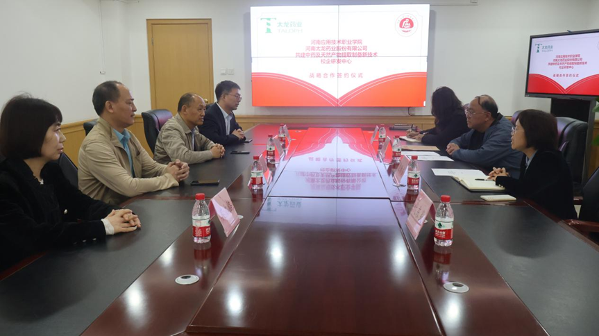 为进一步深化产教融合,加强校企间的纽带联系,10月30日,制药工程学院与河南太龙药业股份有限公司举行共建中药及天然产物提取制备新技术校企研发中心签约及挂牌仪式。科研外事处处长袁清香,制药工程学院院长吕玮、副院长高莉丽、河南太龙药业股份有限公司副总经理张立壮、研发部总监其木格、生产技术部总监张浩、人力资源管理中心总监付霄飞等参加签约仪式。