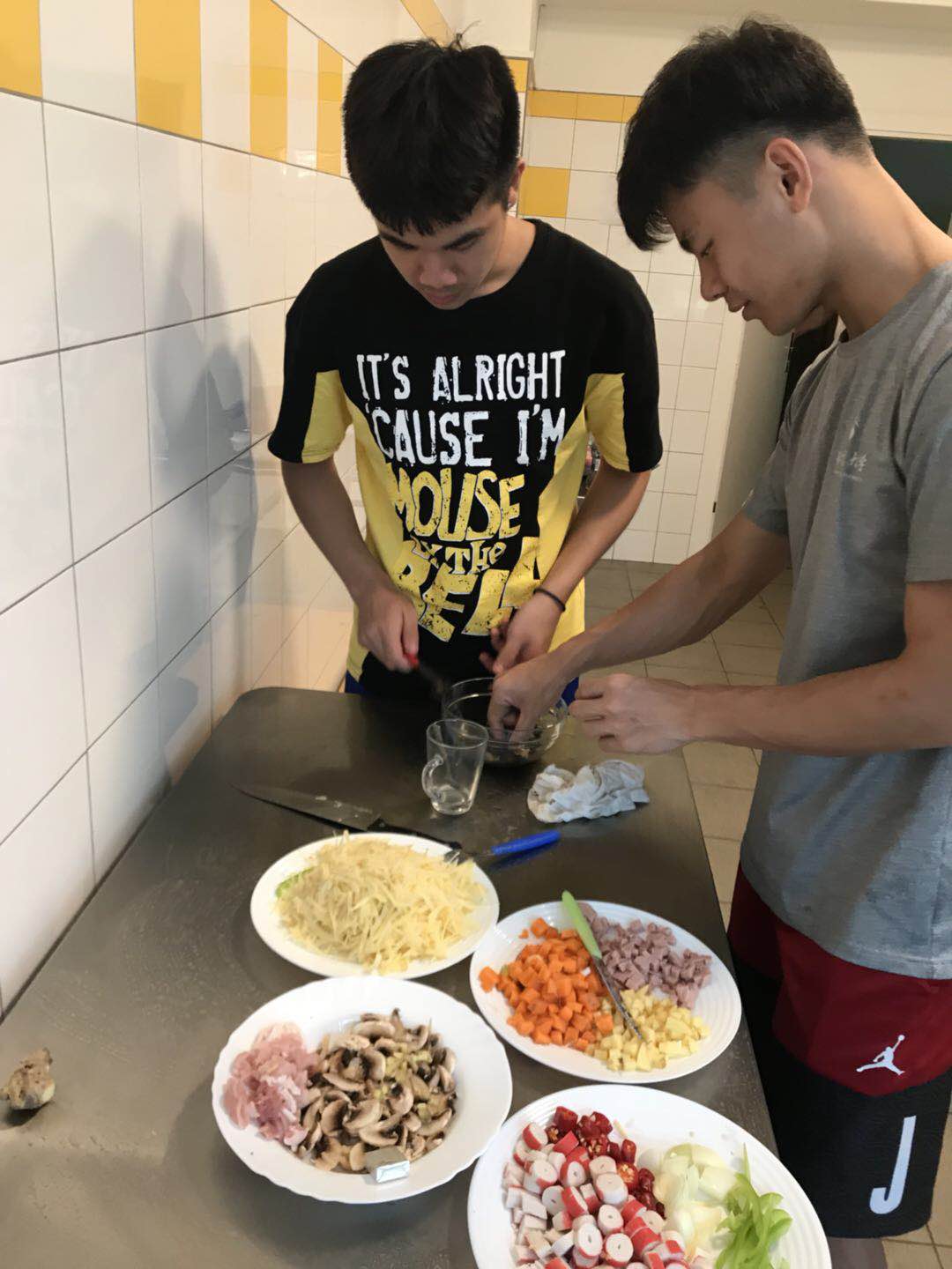 在这里的学习和生活,给我们大家带来极大挑战,除了语言外最大的挑战莫过于克服饮食文化的差异,由于大家都吃不惯当地食物。于是同学们都纷纷动起手来,开始自己制作自己想吃的中国菜。有些从来没下过厨房的同学,也开始学着自己做饭,每天晚饭时间的公寓厨房是最热闹的时候。有的切菜、有的煎肉、有的煮面。天南海北的家乡菜系在这里融合。当饭菜飘散着香气时,恍然间回到了祖国。