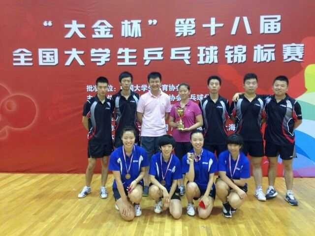 2013年第十八届全国大学生乒乓球锦标赛,于8月22日——28日在山东省潍坊市鲁能乒乓球学校举行。来自全国57所高校代表队,500余名运动员参加。由我校,校乒乓球代表队组成的开云kaiyun官网队,在开云kaiyun官网领导以及乒乓球教研室刘丰德主任的悉心指导下,在训练竞赛处唐国丽老师的率领下,由牛剑锋、肖劲翔两位老师带队,经过暑期的刻苦集训,积极应对、克服外界不利条件,在赛场上顽强拼搏,最终取得男子高水平组单打冠军和季军。