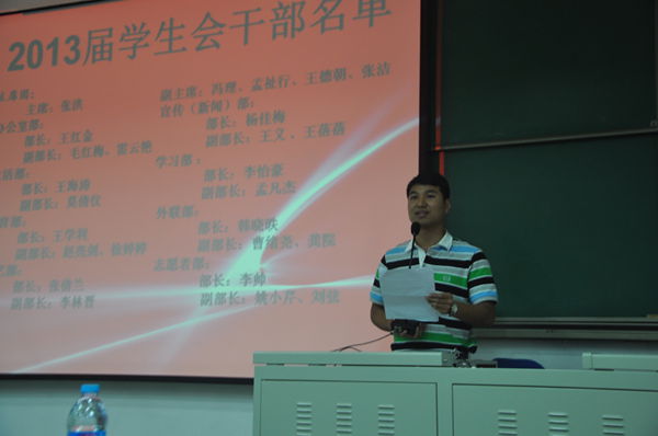 随后,原团总支书记林莹晓雪做了卸任讲话。团总支书记高强做了就职讲话并宣读了新一届学生会干部名单。