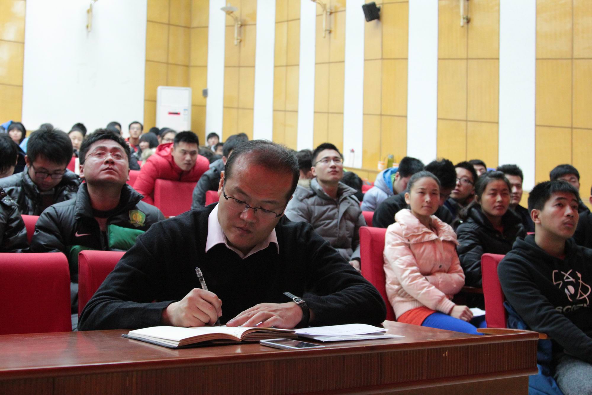 指导老师在听报告