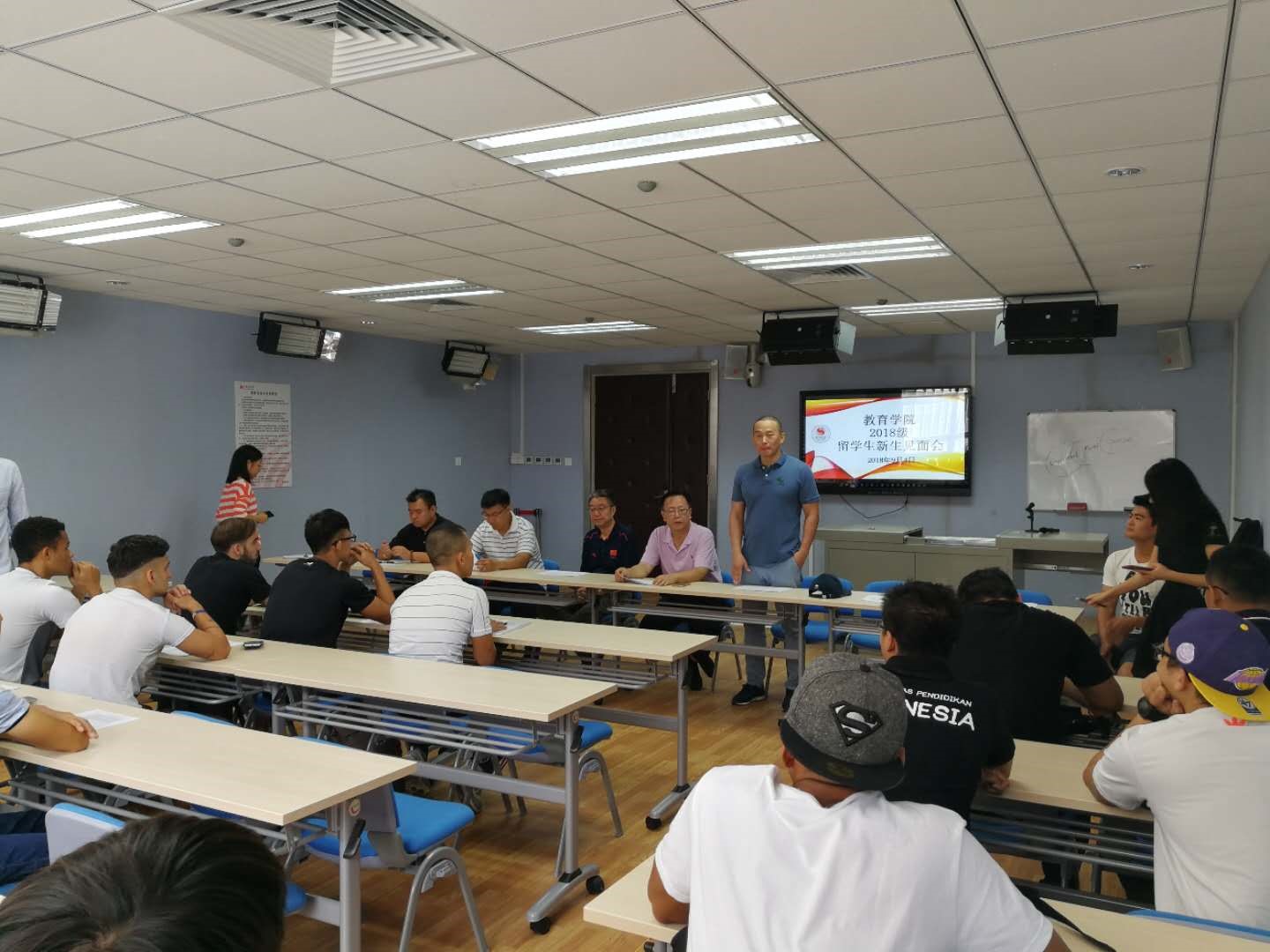 为加强留学生教育和管理,9月4日上午9点,开云kaiyun官网级留学生新生见面会在教学楼教室举行。外事处处长花勇民、开云kaiyun官网院长王华倬、分党委书记李少雄、院长助理高鹏、外事处办公室张笑、学院办公室颜世琦、级辅导员陈尧、级助管朱林欢、研究生助管张烨城及翻译助理吕东烨、金亨玉出席会议。见面会由院长助理高鹏主持。