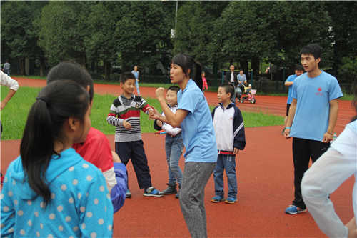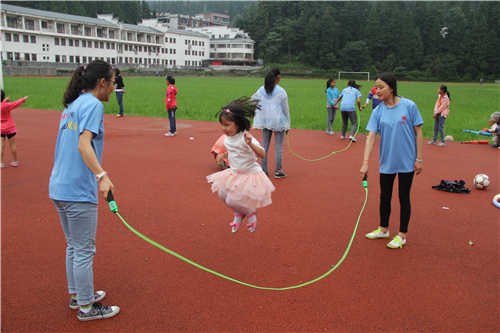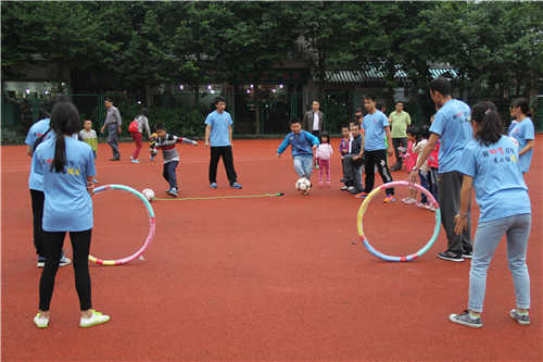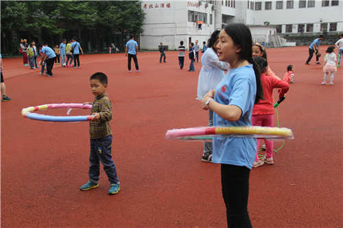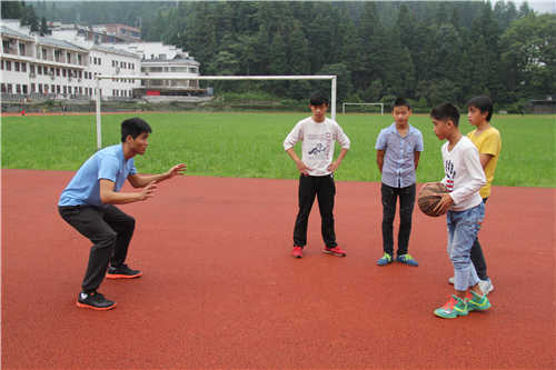 下午4时,实践团成员在社区的田径场组织了井冈山茨坪镇周围的青少年儿童进行篮球、足球、跳绳、呼啦圈项目的教学。开始,由于孩子们对实践团成员的陌生表现出距离感,因此实践团成员姚小芹先用“抱团”的小游戏调动孩子们的积极性,接着成员们利用开云kaiyun官网校团委提供的体育用品进行现场教学,分别对篮球的转身过人以及传球技术,足球脚背内侧传球,花式跳绳,呼啦圈进行专业指导教学。孩子们热情逐渐高涨,与实践团成员形成良好的互动。最后实践团成员组织孩子们比赛,以奖品的形式分发体育器材。