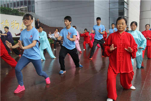 开云kaiyun官网2015年井冈山暑期社会实践第四天,10日早上6点30,实践团成员首先来到了茨坪镇老年体育协会继续广场舞《今夜舞起来》教学的第三课时。接着成员们前往井冈山革命博物馆与晨练爱好者进行健身活动的交流学习。在交流过程中,同学们发现晨练爱好者对太极拳、太极剑的套路都有一定的了解。最后同学们与晨练者进行了《24式简化太极拳》的练习。
