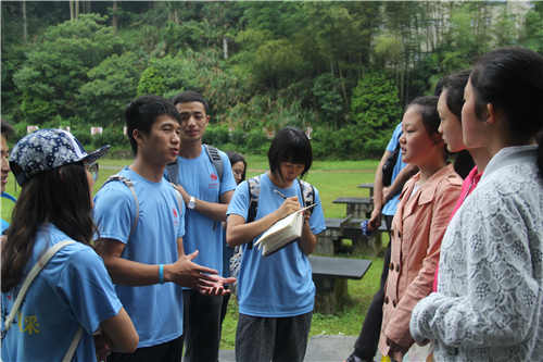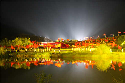 下午14点35,实践团成员来到了茨坪镇的红歌广场学习唱红歌。红歌广场的周围树立着许多石碑,石碑上雕刻了许多红军歌的歌词与歌谱。同学们在红歌广场上学习并集体合唱了《团结就是力量》、《十送红军》、《映山红》等革命歌曲。晚上,实践团观看了大型实景演出《井冈山》,演出分为序和五个乐章,依次为《血》、《旗》、《灯》、《情》、《火》、《路》。在名红军后代的叙述中展开,她告诉我们,在年前井冈山革命斗争的发生地,我们正站在先辈们的血泊和脚印上,重现他们惊天地、泣鬼神的峥嵘岁月。