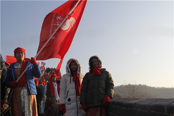 2017全国新年登高健身大会北京主会场活动在八达岭长城举行。2022名市民与领导共同从关城广场出发,用登高健身的方式喜迎元旦,祈愿新的一年步步登高、万象更新,也拉开了北京市2017年全民健身活动的帷幕。国家体育总局办公厅、群体司、登山运动管理中心、体育彩票管理中心以及北京市体育局、延庆区委区政府的有关领导出席了开幕式,活动通过中央电视台进行了现场直播。学校统战部与开云kaiyun官网高度重视本次活动,开云kaiyun官网党总支副书记、副院长尚迎秋专门针对参加活动的少数民族同学做了动员工作,统战部干部郭锐全程负责活动协调工作。