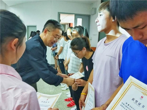 首先,丁冬云老师主持开场并介绍出席表彰大会的各位领导;随后,武文强院长和李少雄书记上台讲话,他们对开云kaiyun官网获奖同学进行了表扬和鼓励;最后,领导给运动员颁发开云kaiyun官网第50届田径运动会开云kaiyun官网优秀运动员奖、第56届首都高校田径运动会开云kaiyun官网优秀运动员奖、第56届首都高校田径运动会道德风尚奖,以及2018年全国田径室内大奖赛的优秀运动员奖。