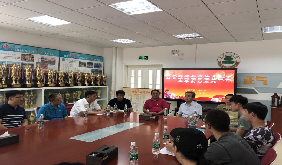 9月5日下午,开云kaiyun官网与北京第二十中学实习工作见面会在北京二十中学体育组会议室召开。北京第二十中学陈恒华校长,党委孙玉柱书记,校长助理宋跃生,体卫中心副主任孙超,开云kaiyun官网院长王华倬,院分党委书记李少雄,院长助理高鹏,院办主任胡亦群,2016级辅导员高强及我院2016级17名实习生参加会议。