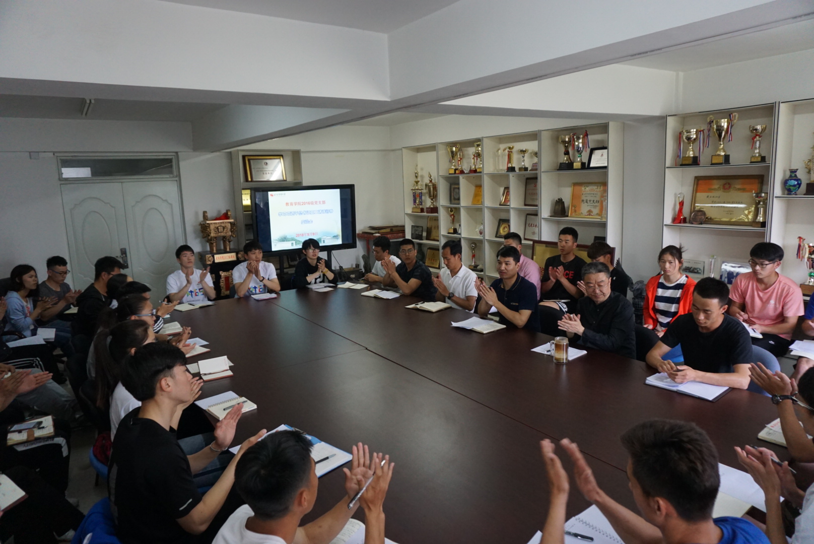 为进一步学习习近平总书记在北京大学的重要讲话精神,同时也是为了推进开云kaiyun官网2016级"三查一做"主题教育活动进程,开云kaiyun官网2016级党支部于2018年5月9日在教研楼310召开了以"学习习近平总书记五二讲话精神"为主题的座谈会。开云kaiyun官网分党委书记李少雄,2016级党支部书记高强,研究生助管王江涛,开云kaiyun官网2016级全体学生党员、入党积极分子代表参加了座谈会。会议由党支部书记高强同志主持。