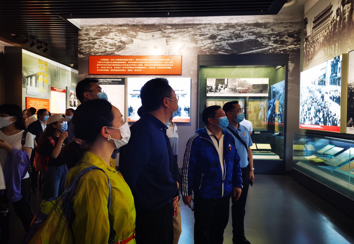 在香山革命纪念馆内,全体党员认真参观了《为新中国奠基——中共中央在香山》主题展览和《红色电波中的领袖风范:毛泽东同志香山时期发布电报手稿》专题展览,仔细聆听每一个单元的讲解,认真观看每件珍贵实物、档案、手稿、图片等展品以及《北平和平解放》《开国大典》等珍贵影像纪录片,重温了中共中央在北京香山领导完成民族独立、人民解放的历史使命和开启中国历史发展新纪元的光辉历程。