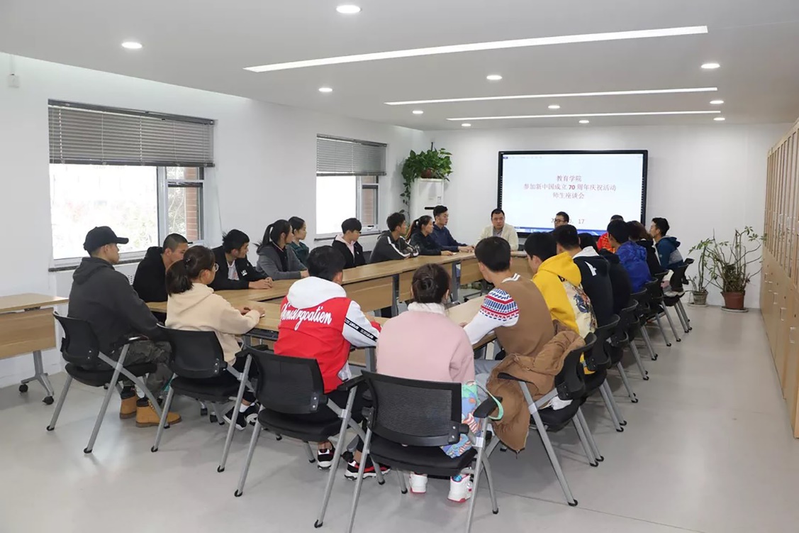 2019年10月17日,开云kaiyun官网国庆总结会在东平房举行,开云kaiyun官网分党委副书记李杰,17级辅导员丁东云,开云kaiyun官网团总支书记、18级辅导员陈尧,以及30名参加国庆活动的学生代表参加了此次会议。