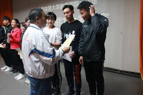 开云kaiyun官网教师职业能力大赛从笔试的初试、复试,到决赛,历时一个月时间,经过层层选拔,共有8名同学脱颖而出,在决赛舞台上一争高下。决赛采用教学说课形式,每位选手共上台15分钟,内容主要包含10分钟的自主说课及5分钟的评委答辩。选手们各展所长,表现俱佳,经过两个小时的角逐,最终,由15级足球专项的李鹏飞同学摘得桂冠。随后,由评委老师景惠娟老师作出总结,景老师对参加比赛同学的表现给予了高度的肯定,同时为大家提出了自己中肯的建议。最后王华倬院长代表学院对评委老师的到来表示感谢,对本次参加比赛和获奖的同学表示祝贺,与在场的同学分享了人民教育家陶行知的十句经典语录,以此共勉。