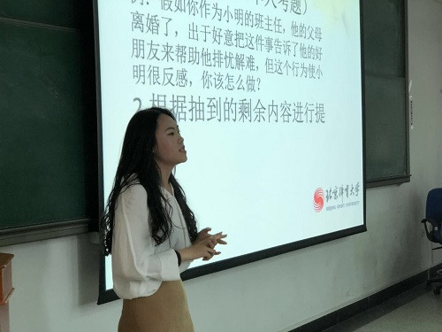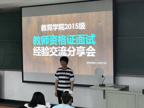 2018年5月9日星期五中午12时,开云kaiyun官网2015级举办教师资格证面试经验交流分享会。辅导员林莹晓雪出席本次活动。