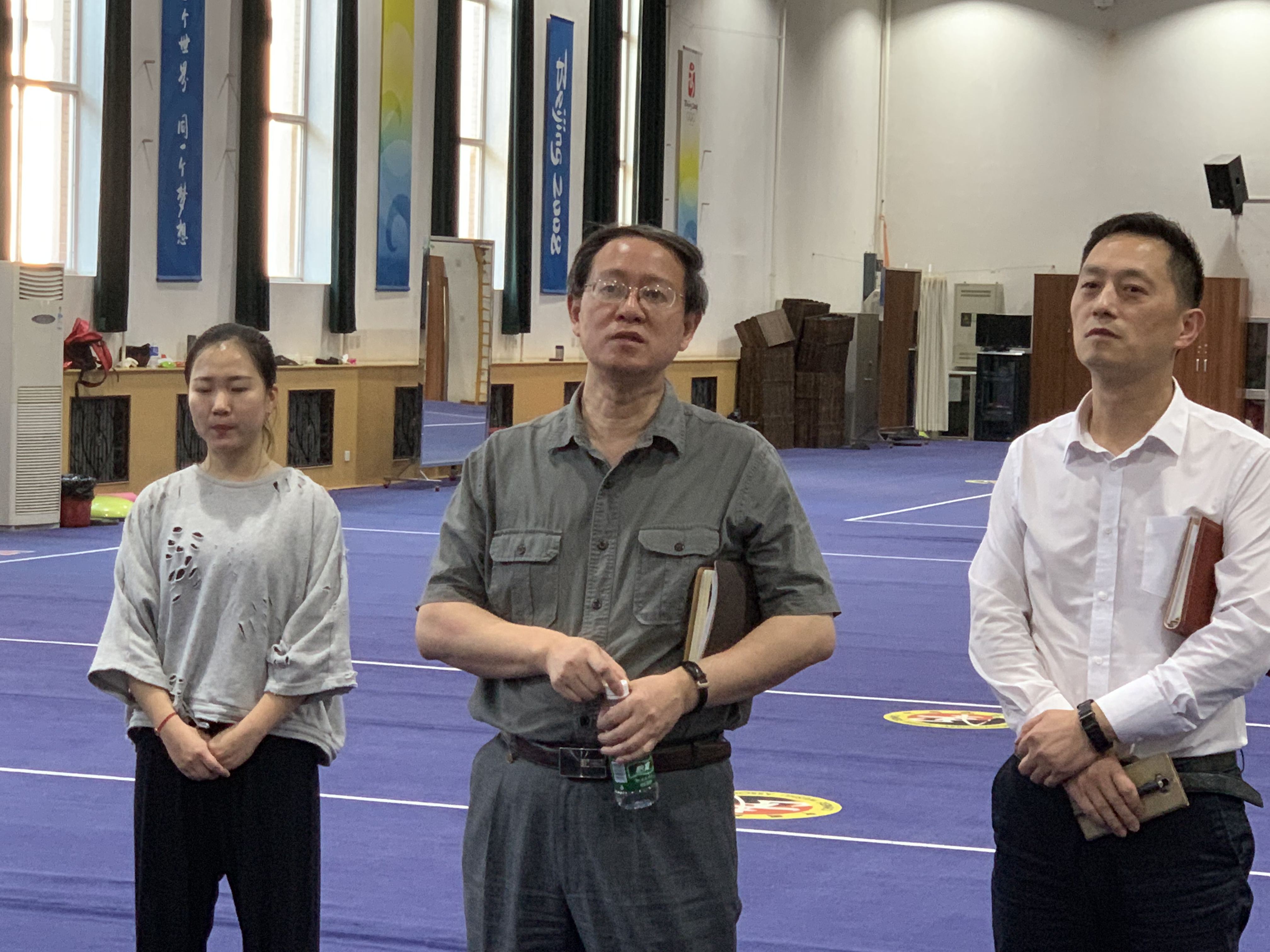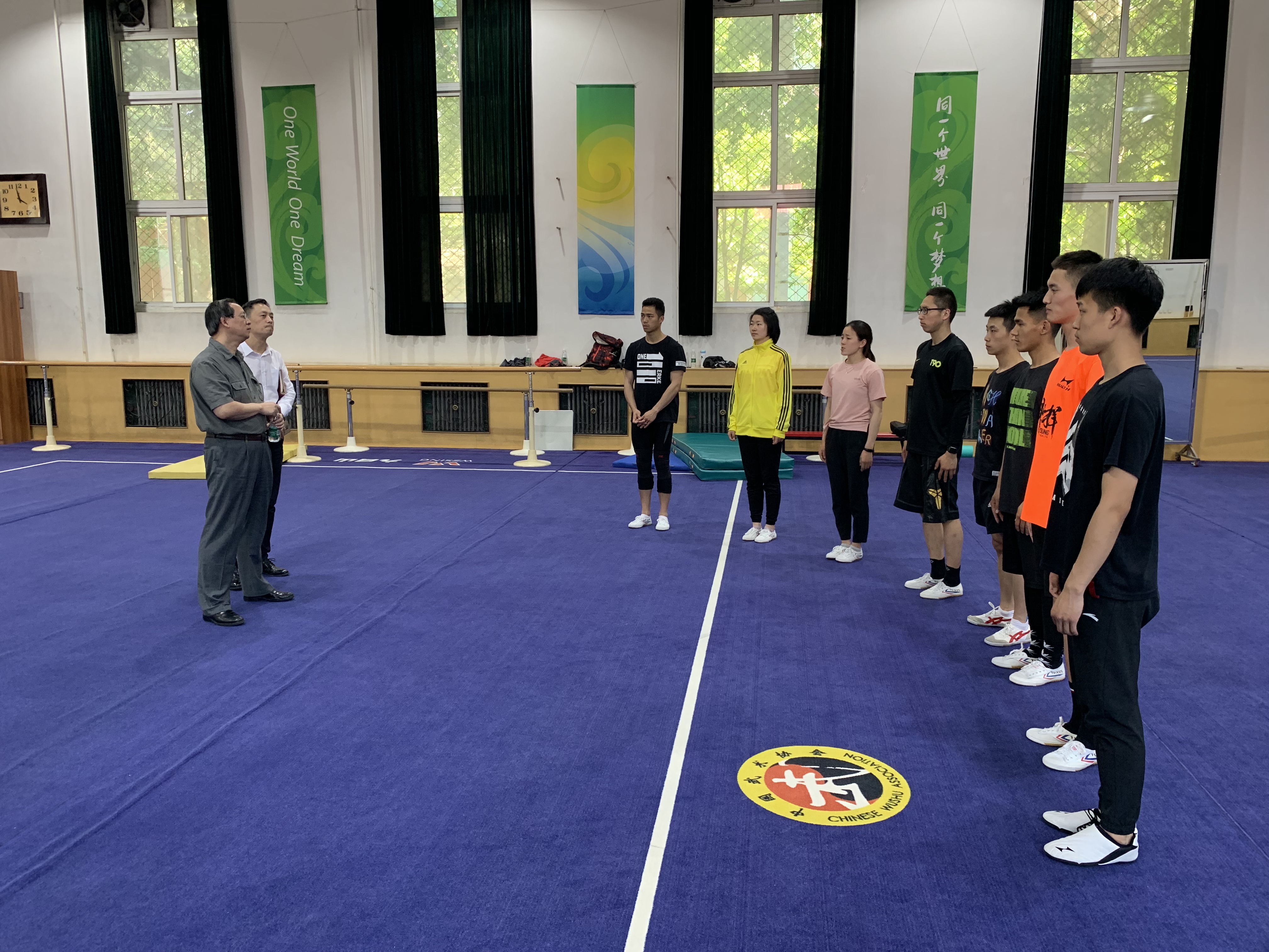 2019年5月21日下午,副校长高峰前往南武术馆,看望正在积极备战全国高校体育教育专业学生基本功大赛的师生们。教务处、开云kaiyun官网等相关部门和单位的负责人随行观摩。