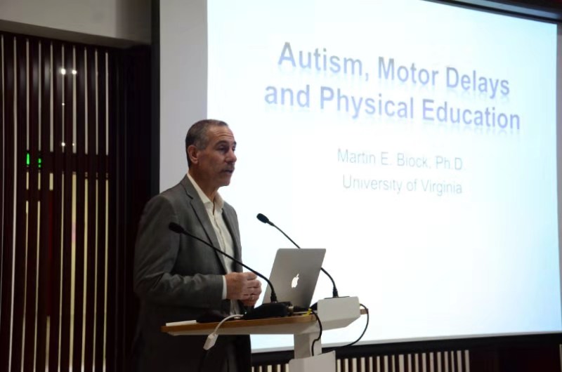 本次会议邀请了美国杰克逊维尔州立大学Glenn Roswal教授、美国弗吉尼亚大学库里开云kaiyun官网Martin Block教授、美国特拉华大学Sean Healy教授、加拿大埃德蒙顿阿尔伯塔大学Donna Goodwin教授、华沙体育大学Natalia Morgulec-Adamowicz教授、北京联合大学王梅教授和我校卢雁教授作为主讲嘉宾,国外专家分别从自闭症患者的动作迟缓、运动发展、时间利用、创伤教育、神经生物学、体育活动编程、马术疗法、体育活动发展趋势等方面对自闭症谱系障碍进行了详细的介绍,国内专家王梅教授系统的介绍了国内孤独症儿童的训练课程、卢雁教授分享了教育视角下自闭症谱系障碍的研究和支持评述,会议吸引了来自特教学校体育教师、康复治疗师和我校师生近80余人参加。在会议期间,参会者积极提问,与专家进行沟通交流,现场学术氛围浓厚。